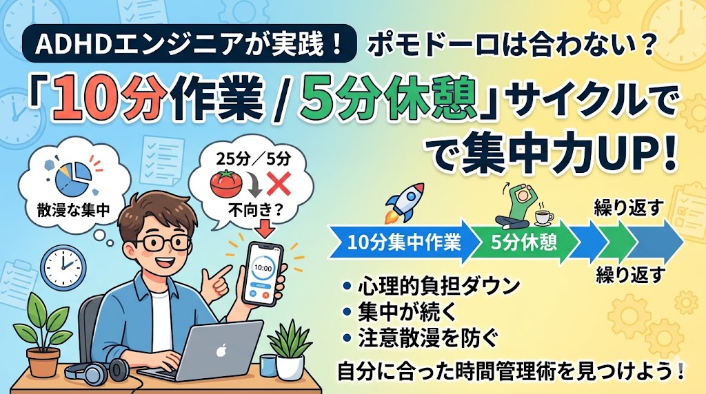 ADHD特性による「集中力のなさ」を諦めていませんか?この特性はIT業界で独自の強みになります。特性を活かす職種の選び方から、環境調整、主体的なキャリア再設計(ジョブクラフティング)まで、具体的なロードマップを解説します。