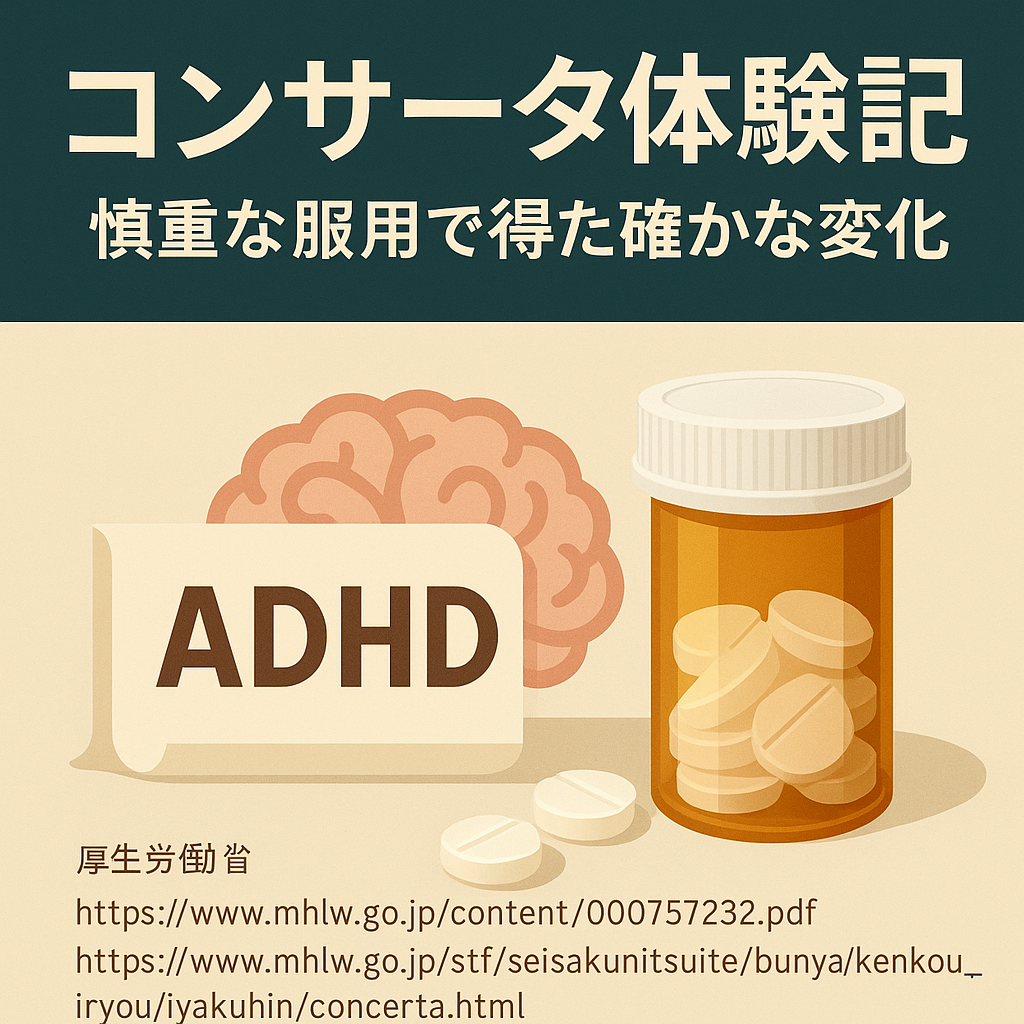 本記事では、筆者が処方薬「コンサータ(メチルフェニデート製剤)」を服用した際の体験をもとに、感じた変化や注意点を丁寧にまとめていきます。薬剤の効果には個人差があり、あくまで一例に過ぎません。治療方針や判断については必ず医師に相談してください。