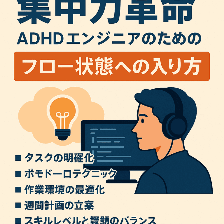 本記事では、ADHDの特性を持つエンジニアが「フロー状態」に入るための実践的な方法について解説します。科学的な根拠に基づいた手法を紹介しながら、日常業務に活かせる具体策を提示していきます。